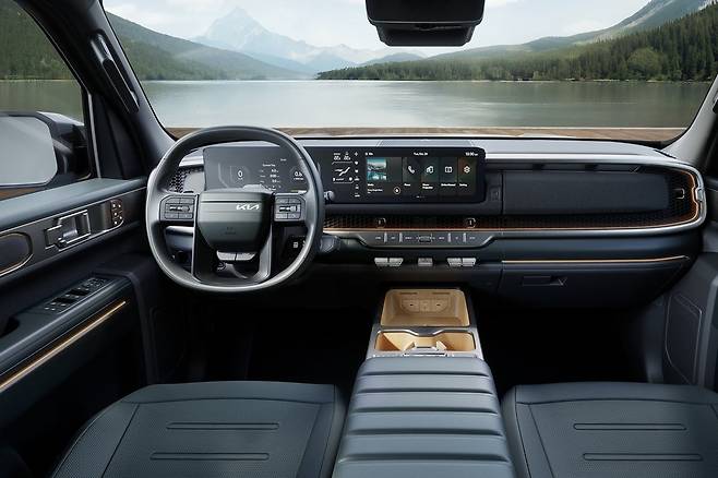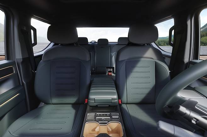 실내 역시 직선 위주로 디자인되어 있어 다소 투박하게 보일 수 있다. 하지만 이런 점이 오히려 타스만의 강렬함을 더욱 강화시켜 준다. 그래도 12.3인치 계기판과 중앙 디스플레이가 이어진 파노라마 디스플레이가 어느 정도 하이테크한 느낌을 내주며, 앰비언트 라이트도 적용되어 분위기를 돋보이게 한다.