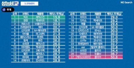 27개 비교 제품 중 가장 무거운 케이스티파이