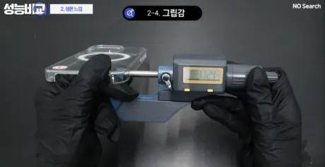 직접 들어 보았을 때 상당히 묵직한 느낌이 들었는데요. 실제 무게를 측정해 보니, 50g으로 비교 제품 중 가장 무거웠습니다. 아이폰 14pro가 약 200g 내외인 점을 생각해 보면, 케이스 장착 시 25%가량 무거워지는 셈입니다.