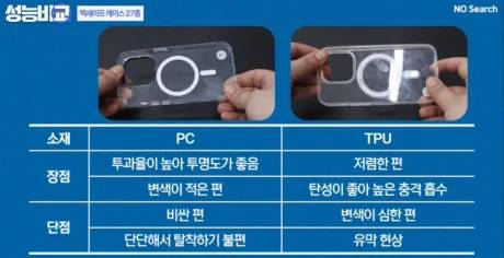 단단한 PC소재는 부드러운 TPU소재에 비해 변색에 강하다는 장점이 있는데요.
