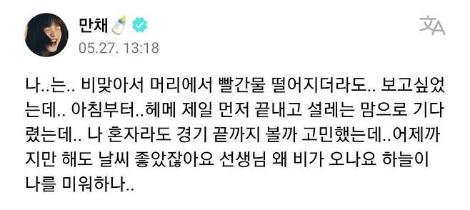 2022년에는 멤버 채원 님과 함께 시구와 시타를 맡아 ‘승리 요정’으로 등극하기도 했습니다. 2023년에도 시구를 준비했지만 아쉽게도 우천으로 취소되었는데요. 당시 팬 소통 플랫폼을 통해 “두산 사랑해요 응원해요 또 시구 불러줘요”라며 아쉬움을 토로하기도 했습니다. 바쁜 스케줄 속에서도 야구장을 직접 찾아 응원하는 모습이 여러 차례 포착되며 ‘찐팬’임을 인증했습니다.