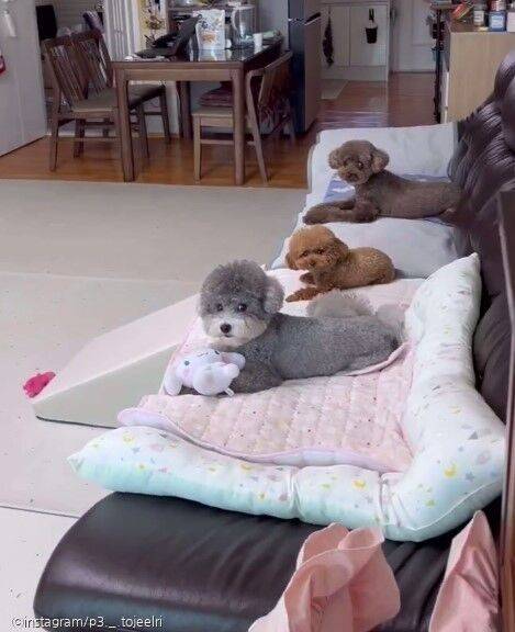 푸들 삼형제 토리, 제리, 엘리는 각각 9살, 6살, 2살이 된 아이들이다.