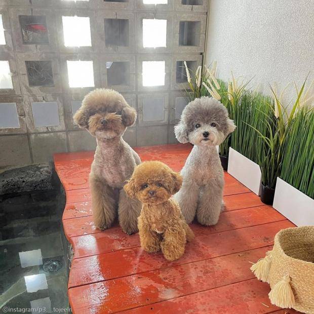 푸들 삼형제 토리, 제리, 엘리는 각각 9살, 6살, 2살이 된 아이들이다.