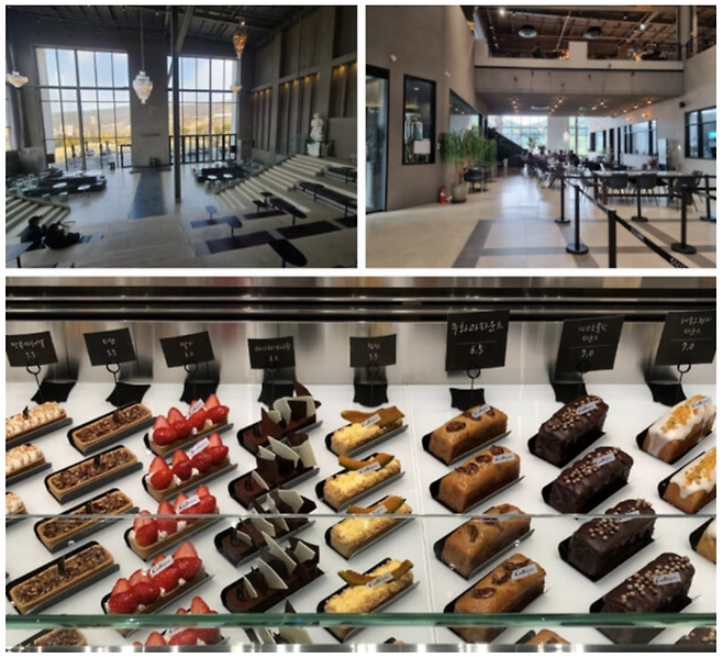 건물 내 통창을 통해 펼쳐지는 용인의 자연 풍경은 감탄을 자아내며, 1층의 음악회장을 연상시키는 고급스러운 인테리어는 특별한 분위기를 연출합니다. 따뜻한 날씨에는 야외 테라스에서 자연을 느끼며 커피를 즐기는 것도 좋은 선택입니다.