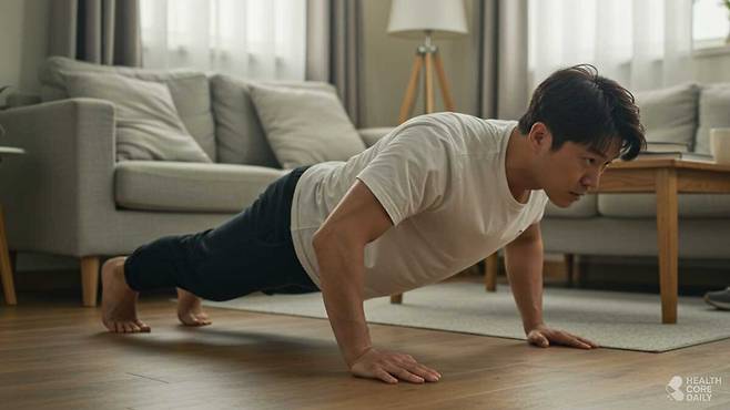 칼로리 소모도 무시할 수 없다. 푸시업 10개는 약 5~7kcal 정도지만, 세트를 늘려 30~50개까지 하면 체중 관리에도 도움 된다. 특히 전신이 동시에 움직이기 때문에 생각보다 호흡이 차고 땀이 난다. 무엇보다 매일 이어가는 습관이 체력을 끌어올리고, 몸이 예전보다 가벼워지는 걸 체감할 수 있다.