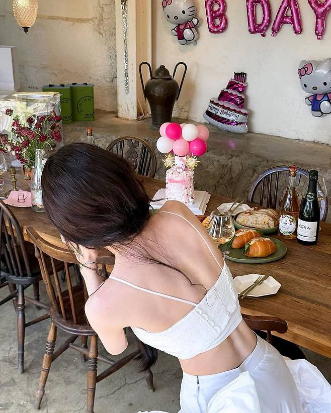 이날 파티 테이블 위에는 여러 종류의 빵과 샐러드, 와인과 샴페인이 정갈하게 세팅돼 있었으며, 그녀가 직접 고른 듯한 미니 케이크는 헬로키티와 핑크 풍선 장식으로 꾸며져 인형 같은 무드를 더했다. 이런 디테일 하나하나가 송지아 특유의 감성 연출력을 엿볼 수 있게 하며, 인플루언서로서 그녀의 패션과 라이프스타일 감각을 다시금 입증했다.