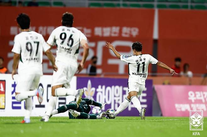 전북은 후반 10분 김대원의 페널티킥 득점으로 끌려갔지만 후반 추가시간 기사회생했다. 티아고가 페널티킥 골로 동점을 만든 뒤 츄마시가 역전골에 성공하며 경기를 뒤집었다. 극적인 승리를 거둔 전북은 부천FC를 꺾은 광주FC와 우승컵을 놓고 다툰다.