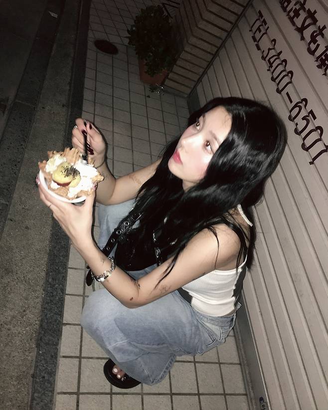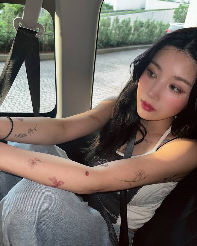 사진 속 권은비는 탱크톱에 청바지를 입고 팔에 컬러 타투를 드러내고 있습니다.