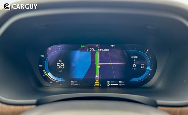T맵 오토가 계기판과 연동되는 기능은 편리하나, 제한속도가 HUD나 계기판에 뜨지 않는다. 센터 디스플레이에서만 확인이 가능한점은 불편하다.