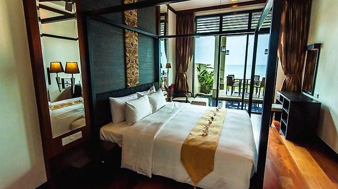 보르네오 비치 빌라는 핑크빛 일몰을 숙소에서 즐길 수 있는 코타키나발루 숙소다. 해변을 따라 수십 채의 빌라가 이어지는 빌라형 리조트로, 빌라 앞엔 바다가 펼쳐지고 뒤로는 나무와 숲이 있어 코타키나발루의 자연을 고스란히 느낄 수 있다. 전용 수영장과 해변으로 바로 연결되는 투 베드룸 비치프론트 빌라 객실이 인기가 많다.