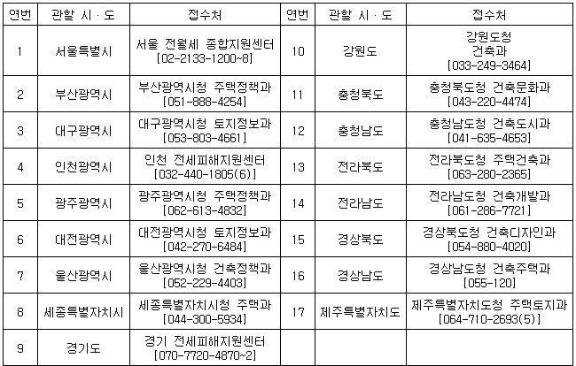 [표] 시·도별 전세사기 피해자 신청 접수처