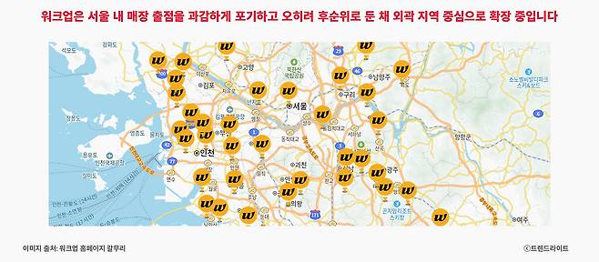 워크업도 비슷한 유통 전략을 펼칩니다. 매장은 공장 밀집 지역과 외곽 위주로 배치돼 있으며, 이는 작업자의 출근 동선과 차량 이동 경로를 고려한 결과입니다. 서울 매장이 단 두 곳뿐인 것도 이 때문인데요. 그마저도 가산디지털단지와 성수, 모두 공장 지역이죠 ‘서울공화국’이라 불리는 한국에서 서울을 후순위에 둔 전략은 오히려 더 과감하게 느껴집니다.