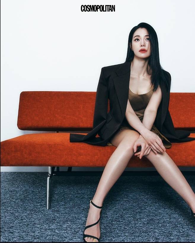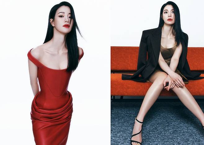 반면, 브라운 미니 원피스에 블랙 재킷을 걸친 또 다른 룩에서는 절제된 시크함과 도발적인 무드를 동시에 연출하며 화보 장인다운 면모를 과시했습니다.