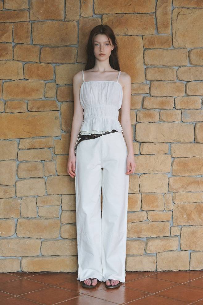 야외 활동이 많은 날에는 활동성을 고려한 화이트 팬츠 스타일링을 추천한다. 셔링 디테일의 슬리브리스 톱과 와이드 핏 팬츠로 편안함과 세련된 실루엣을 동시에 잡을 수 있기 때문. 실내애서 여유로운 시간을 보내고 싶은 집순이 룩도 준비됐다.