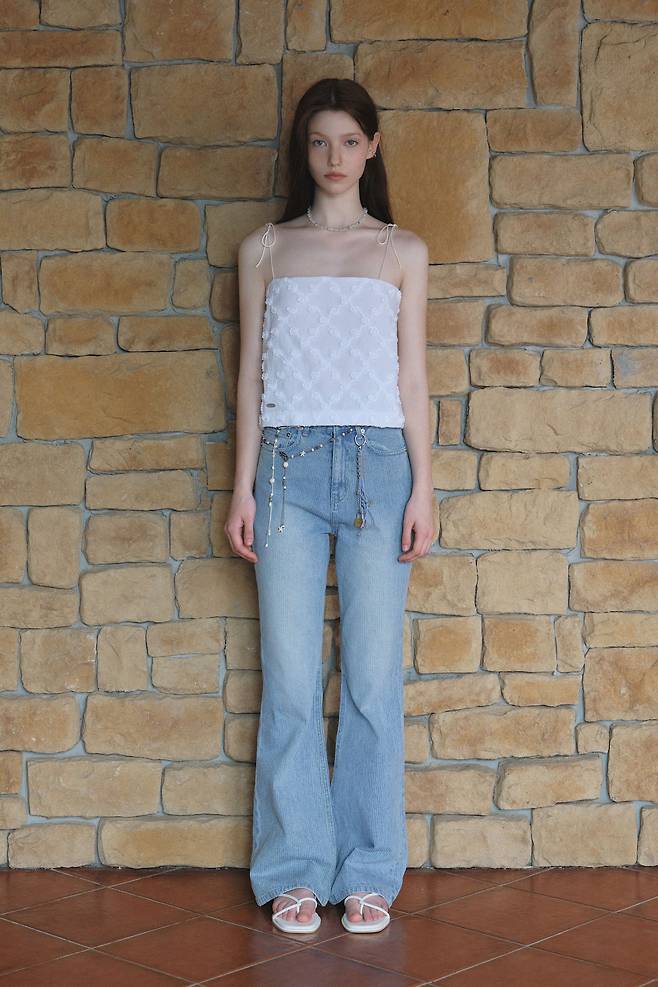 도시를 사랑하는 시티호퍼라면 화이트 슬리브리스 톱과 청바지의 조합! 입체 플라워 패턴의 톱과 스톤 워싱 부츠컷 데님이 캐주얼하면서도 시원한 무드를 전한다. 여기에 스트라이프 테리 백이나 문 스톤 네크리스와 같은 유니크한 액세서리를 활용하는 것도 좋은 방법이다.