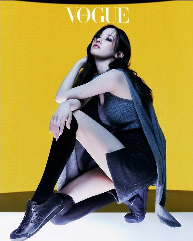 또 다른 사진에서 전종서는 그레이 톤의 니트 탑에 긴 니 삭스와 스니커즈를 매치해 편안하면서도 시크한 무드를 완성했습니다.
