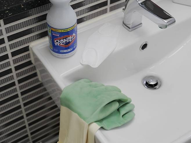 락스를 이용하여 청소를 할 때 코나 눈의 따가움을 유발할 수 있어 고무장갑과 마스크를 끼고 충분한 환기는 필수로 해줘야 해요.
