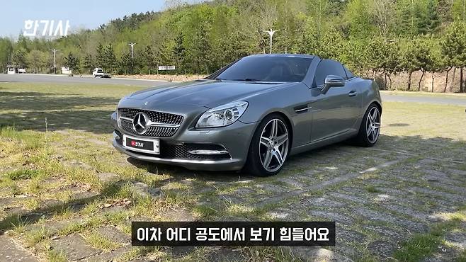벤츠 SLK의 가장 큰 장점은 디자인입니다. 이 차량은 기본 디자인에서 개인적으로 수정을 했습니다. 전면부 그릴이 원래 아무것도 없는 민짜 그릴이었는데, 다이아몬드 그릴로 바꿨고, 휠도 17인치를 18인치 AMG 휠로 바꿨습니다.