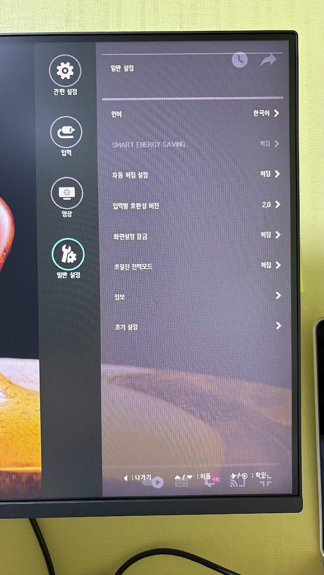 버튼은 하나 밖에 없습니다. 누르면 전원이 켜지며 4방향으로 메뉴를 조정할 수 있습니다. 처음에는 낯설지만 몇 번 익숙해지니 편리하네요. 모니터 후면이나 측면에 여러 개의 버튼이 달린 제품의 경우 눈으로 보지 않고 손가락 감각으로만 눌러야 하기 때문에 어떤 버튼을 누르는지 잘 모를 때가 있는데 LG 24U411A는 버튼이 하나이므로 혼동할 이유가 없기 때문입니다.