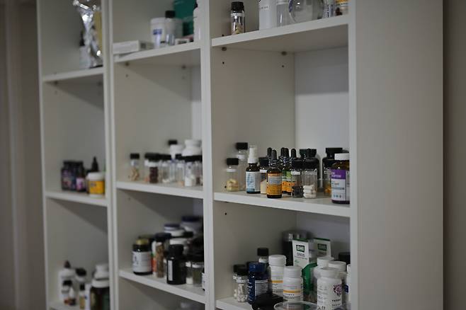 4. 우측 가운데 노란색 병의 작은 글씨 Brain & memory Suppliment Facts 에 초점을 맞췄으니까 글씨를 확대해서 비교해보세요.