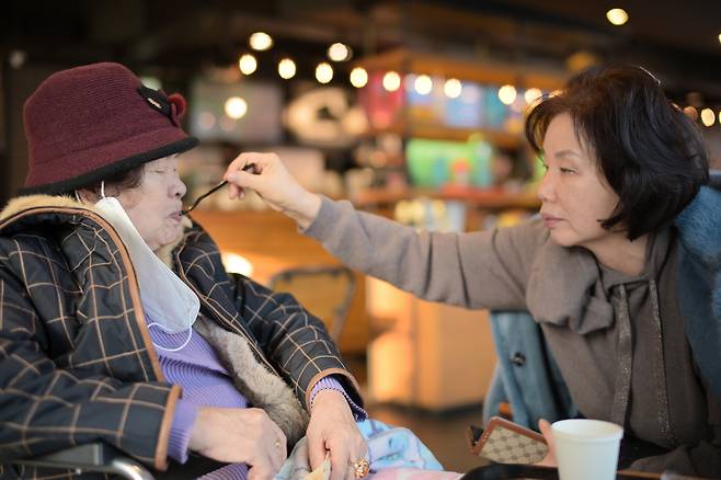 어머니와 제 아내입니다. 작년 12월 26일인데 이때만 해도 수동 초점이 익숙한 때가 아니라서 핀이 조금 나갔네요. 어머니를 보살피는 따뜻한 모습이라서 제가 무척 좋아하는 사진입니다.