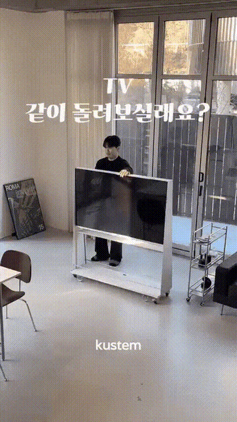 기존 이동식 TV의 단점을 모두 해결한 제품을 찾고 있다면 커스템 트롤리핏을 주목하자. 55인치 4K 디스플레이에 철제 프레임으로 제작한 트롤리가 결합된 제품으로 실용성과 디자인 모두 잡았다. 스테디 인테리어로 자리 잡은 미드센추리 모던 인테리어를 추구하고 있다면 커스템 트롤리핏의 톤 다운된 색감과 철제 프레임은 궁합이 맞다.