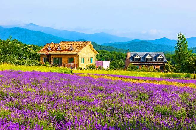강원도 고성의 작은 산골 마을에 자리한 하늬팜에는 신비하고 몽환적인 라벤더밭이 있습니다. 마치 남프랑스 라벤더밭이 연상되며, 여름에 살아나는 라벤더밭이 하이라이트입니다.