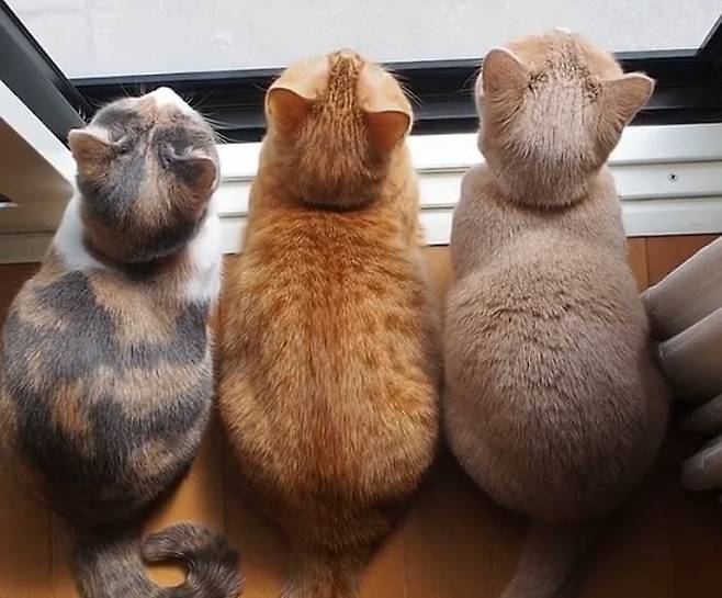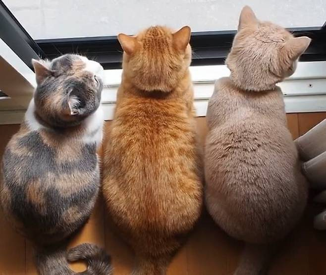 고양이 세 자매가 사이좋게 창문 앞에 앉아 바깥을 바라보는 모습이 많은 사람들의 마음을 사로잡았습니다. 집사는 창문 앞에 나란히 앉아 있는 고양이들의 귀여운 뒷모습을 공개했는데요, 그 모습이 마치 조랭이떡을 연상케 하여 더욱 사랑스러움을 자아냈습니다.