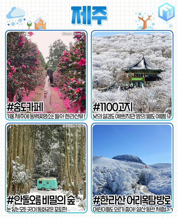 ✅ 숨도카페 ✅ 1100고지 ✅ 안돌오름 비밀의 숲 ✅ 한라산 어리목탐방로