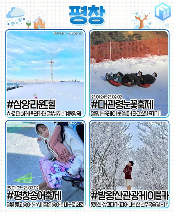 ✅ 삼양라운드힐 ✅ 대관령눈꽃축제 ✅ 평창송어축제 ✅ 발왕산관광케이블카