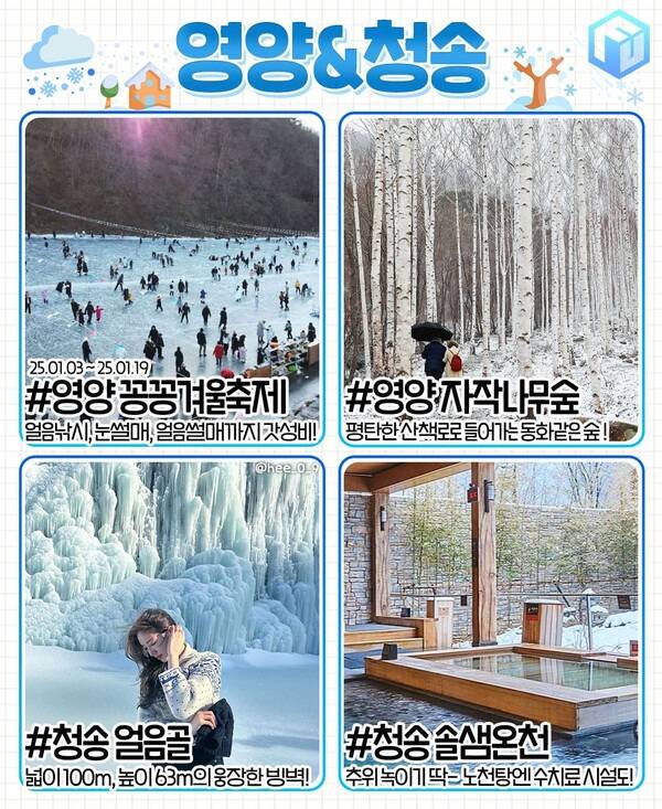✅ 영양 꽁꽁겨울축제 ✅ 영양 죽파리 자작나무숲 ✅ 청송 얼음골 ✅ 청송 솔샘온천