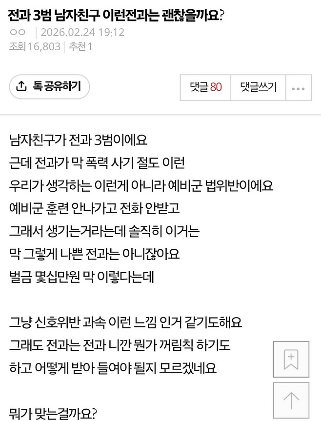 전과 3범 남자친구가 걱정인 여자