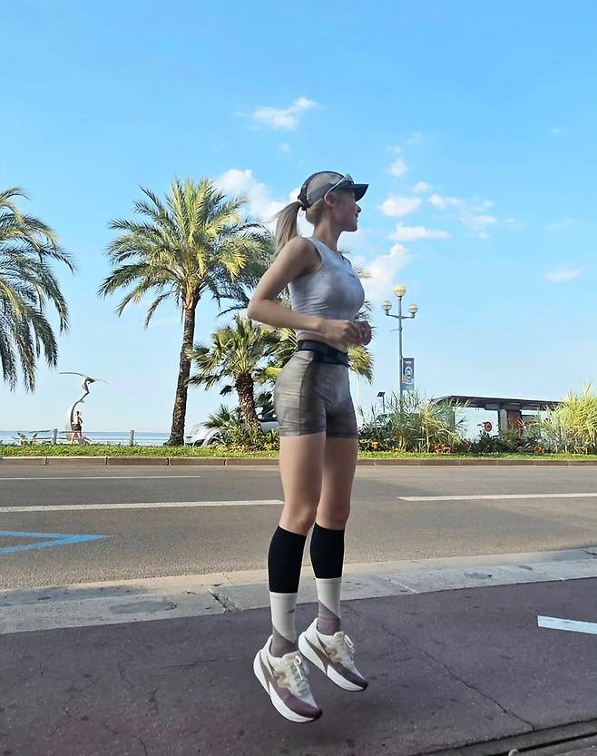 그리고 까치발로 완성한 매끈한 각선미까지 드러내며 ‘운동 여신’의 존재감을 과시했다.
