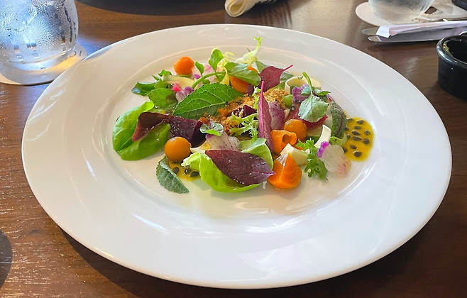 눈앞에 놓인 요리는 다름 아닌 샐러드. 해산물이나 스테이크를 상상했는데, 각종 채소로만 이루어진 샐러드의 등장에 갸우뚱했다. 익숙한 반응이라는 듯 셰프는 웃으며 설명했다.