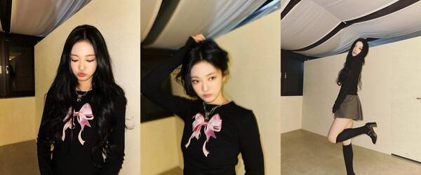 리본 긴팔 티셔츠가 에스파 닝닝과 권은비 패션에 모두 등장하여 다시금 열풍이 불고 있다. 심플한 티셔츠에 입체적인 리본 프린팅으로 소녀스러운 룩을 완성시켰다.