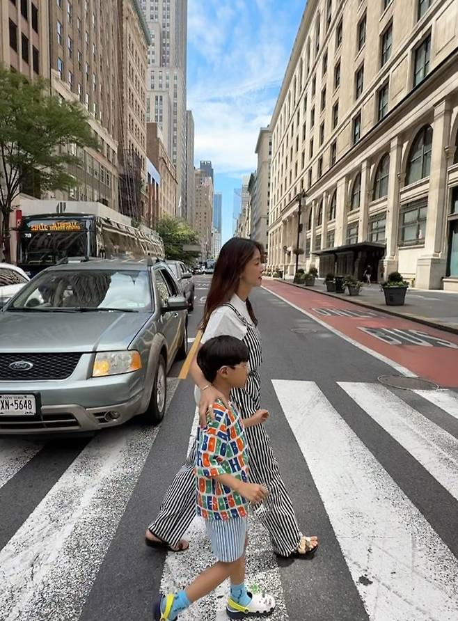 공개한 사진에서 이시영은 아들과 함께한 뉴욕 여행지에서 편안하면서도 센스 넘치는 패션 감각을 뽐냈다.