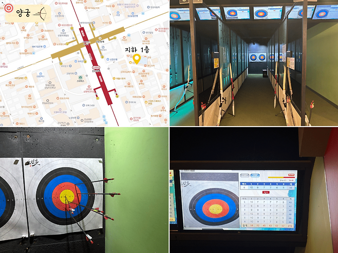 이곳은 실제 선수용 장비와 유사한 활, 화살, 보호구를 제공해 마치 선수 체험을 하는 듯한 느낌을 준다. 일행끼리 한 레인에서 번갈아가며 6발씩 활을 쏘는 방식으로 게임을 진행하며, 쏜 화살은 상대가 직접 과녁에서 뽑고 점수를 불러주는 ‘아날로그 방식’도 체험의 재미를 더한다.