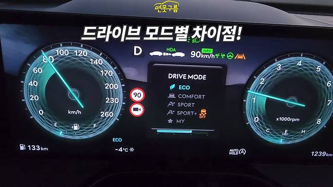 GV80은 총 5가지 드라이브 모드를 제공한다. 에코, 컴포트, 스포츠, 스포츠 플러스, 마이 모드 등 다양한 모드로 운전자가 원하는 주행 감각을 선택할 수 있다. 컴포트 모드에서는 부드러운 주행감을 유지하며 일상 주행에 적합하다. 반면 스포츠 모드로 전환하면 차량 반응이 민감해지고 역동적인 주행을 경험할 수 있다.