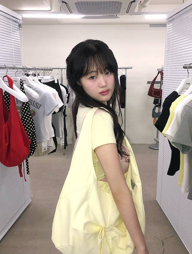 귀여운 레터링 디테일이 있어 자칫 심심할 수 있는 룩에 활기를 불어넣어 줘요.