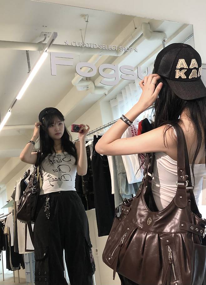비슷한 컬러의 가방을 매치해도 과하지 않고, 전체적으로 자연스럽게 연결돼요.