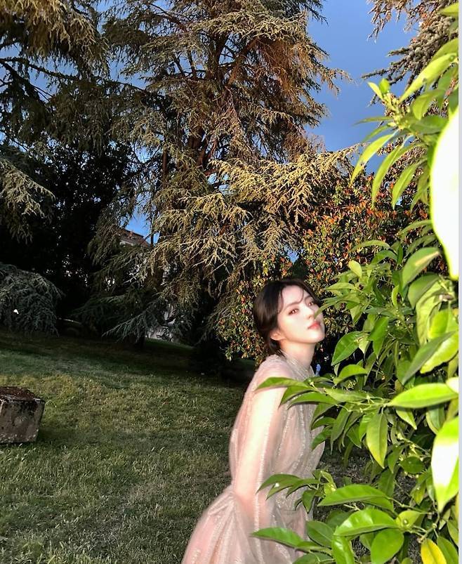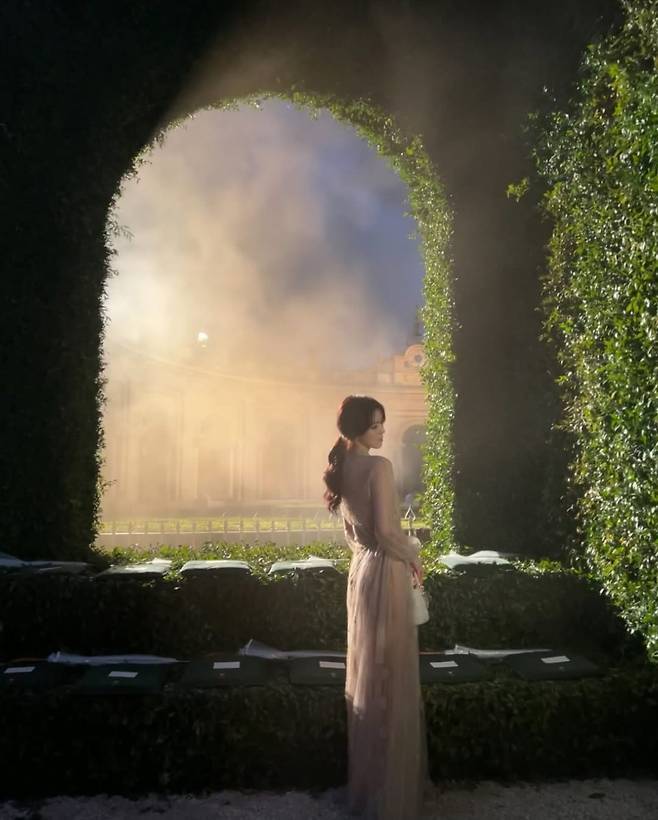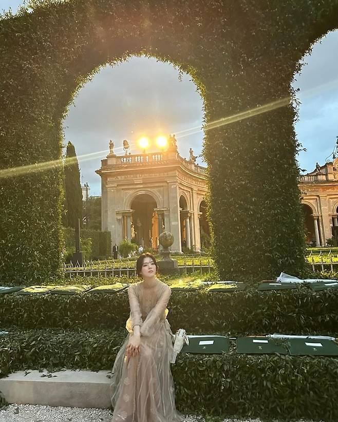 배우 한소희가 꿈결처럼 낭만적인 유럽 정원을 배경으로 한 폭의 명화처럼 피어났습니다.