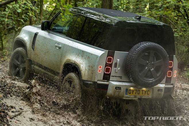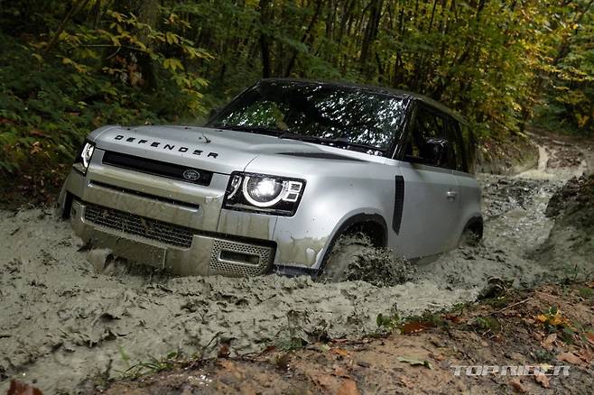 디펜더 90 P400 X는 인제니움 I6 가솔린 엔진과 48V 마일드 하이브리드 시스템, 8단 자동변속기가 조합돼 최고출력 400마력, 최대토크 56.1kgm를 발휘한다. 정지상태에서 100km/h까지 6초만에 가속한다. 주행 조건에 따라 차고를 조절하는 전자식 에어 서스펜션이 기본이다.
