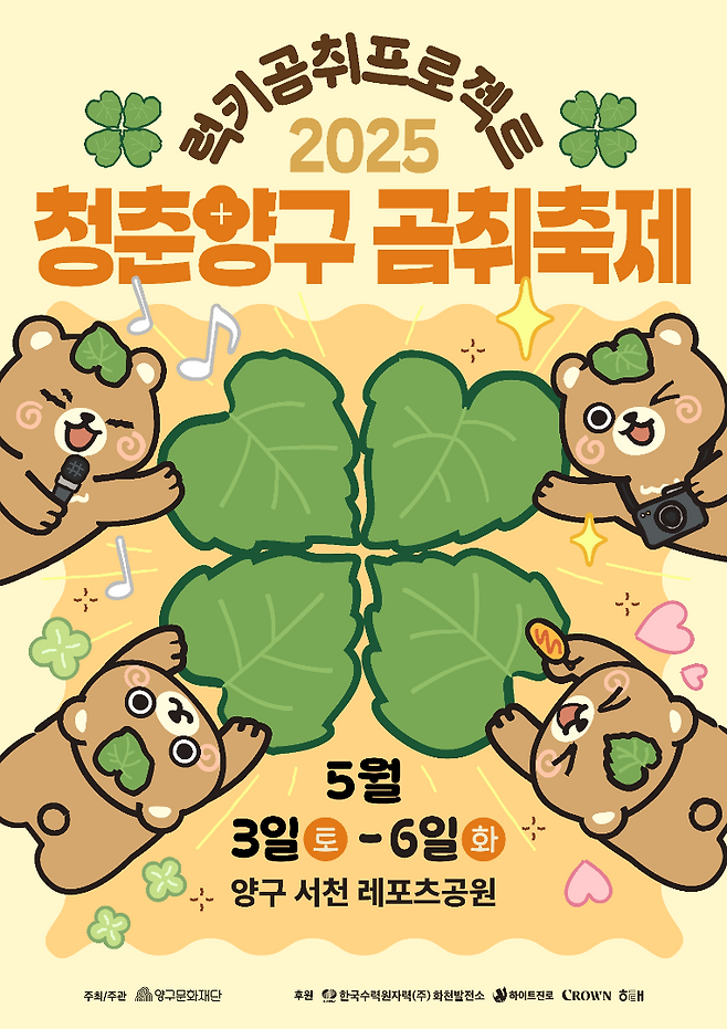 강원도 양구는 곰취 최대 생산지로, 매년 봄이 무르익을 즈음이면 지역의 대표 먹거리이자 봄철 보약 같은 곰취를 주제로 한 ‘청춘양구 곰취축제’가 펼쳐집니다. 올해 축제는 5월 3일부터 6일까지 양구 레포츠공원 일원에서 열리며, ‘럭키 곰취 프로젝트’라는 테마 아래 다양한 체험과 공연, 전시가 어우러진 풍성한 행사로 준비됐습니다.