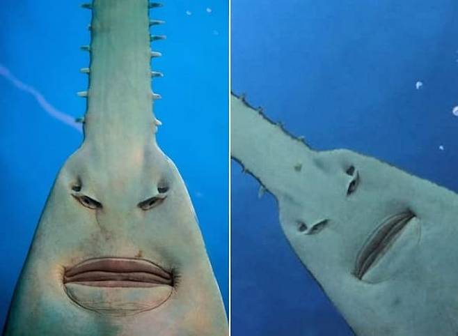 사연은 이렇습니다. SNS상에는 독특한 얼굴을 가지고 있어 순간 두 눈을 휘둥그레 만드는 톱 가오리의 얼굴이 담긴 사진이 공개가 됐죠.