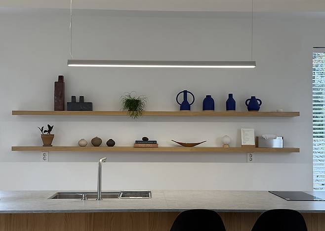 건축주의 취향이 담긴 세라믹 오브제들이 부쉬코너를 더욱 빛내준다. 공간과 특히나 잘 어우러지는 Sophie Alda의 화병 시리즈가 포인트.