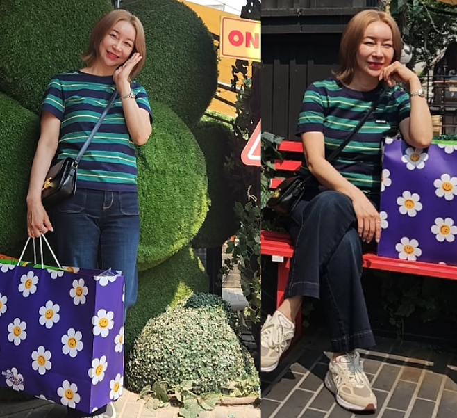 최근 김지현은 초록색과 네이비 스트라이프 반팔 티셔츠에 데님 팬츠로 편안한 일상룩을 선보였습니다. 운동화를 매치하고, 미니멀한 크로스백을 들고 캐주얼함을 더했습니다. 김지현의 일상룩은 언제나 자연스럽고 세련되게 자신만의 스타일을 완성하는 모습을 보여주고 있습니다.
