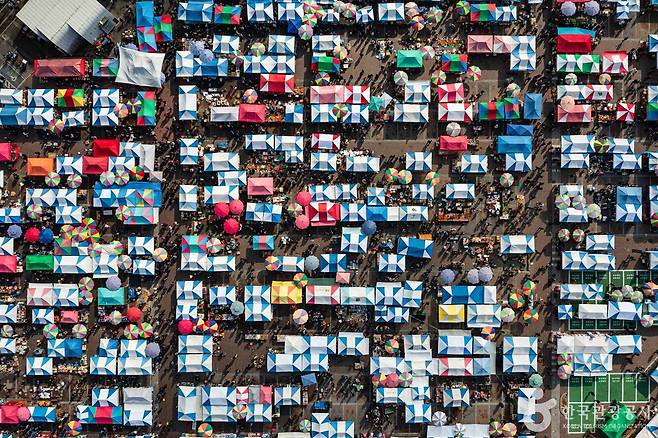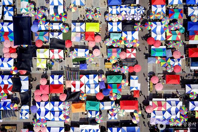 매번 1만 2천여 ㎡에 달하는 장터 안에서는 아침부터 형형색색의 파라솔 아래 사람들의 웃음소리와 물건을 흥정하는 소리가 가득하죠.