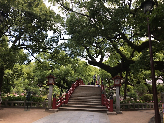 일본 영화 중 ‘너의 췌장을 먹고 싶어’라는 영화에 등장한 신사로 많은 방문객이 들른다. 근처에는 규슈 국립 박물관, 후쿠오카 역사관이 있으니 신사를 구경한 후 전시를 관람하는 것을 추천한다.