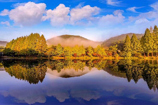 무엇보다 저수지에 데칼코마니처럼 반영된 메타세쿼이아 풍경은 입암저수지의 하이라이트라고 할 수 있다. 공기 좋고 풍경 좋고 단풍 명소로도 좋은 계룡시 가볼 만한 곳을 찾고 있었다면 입암저수지로 떠나보자.