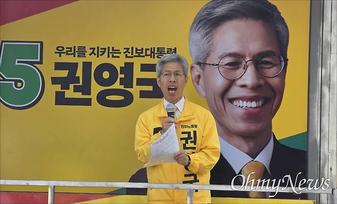 마지막으로 권 후보는 "자신을 찍으면 사표가 될 것이라는 걱정은 하지 말라"고 당부했다. 그는 "지금까지 사표 논란 때문에 많은 국민이 자신이 원하는 선택을 하지 못했다"며 "이로 인해 마치 우리의 삶이 두 가지 선택지만 있는 것처럼, 진영 논리에 갇힌 대결 정치가 이어졌다"고 지적했다. 이어 "그 사이 노동자, 서민, 자영업자의 목소리는 투표에 제대로 반영되지 못했다"며 "언제까지 이런 불행을 반복할 것인가. 자기 목소리를 내줄 후보에게 투표하면, 그 득표율이 곧 내 목소리가 될 것"이라고 호소했다.